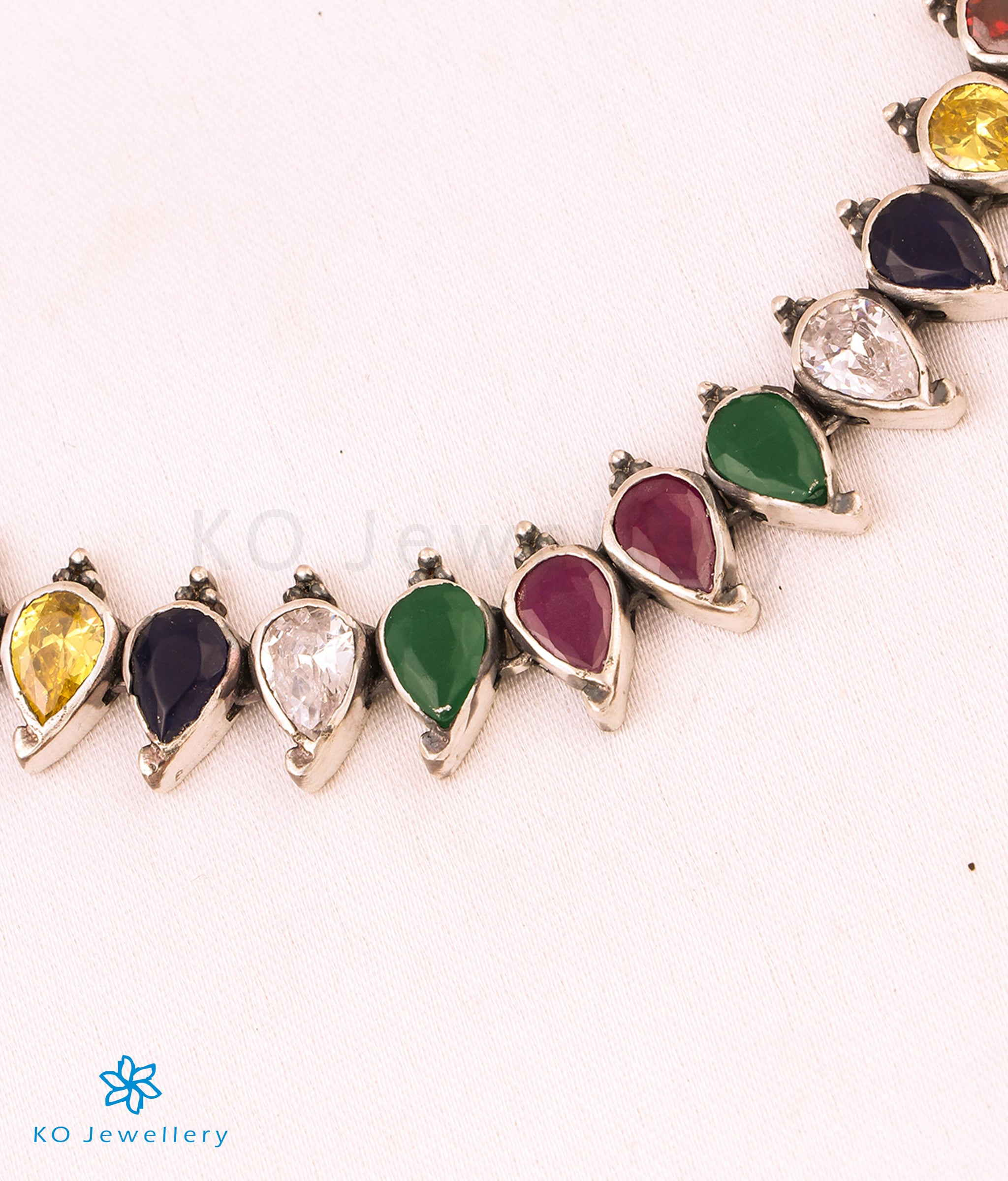 The Aru Silver Navratna Necklace (Oxidised)- Buy lightweight silver necklace - KO Jewellery