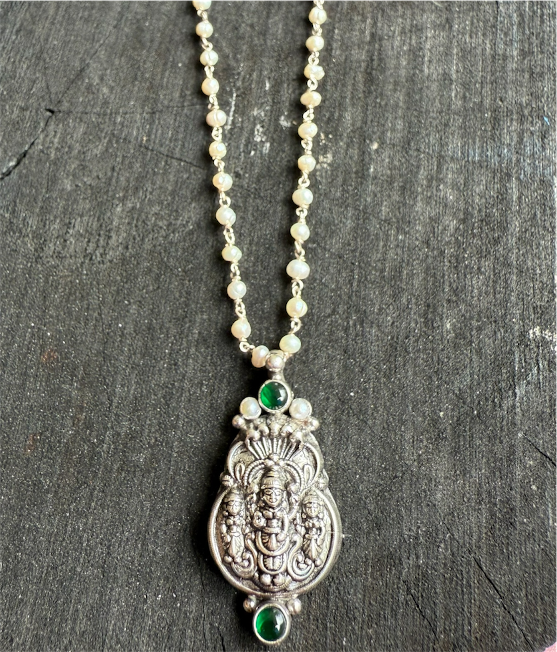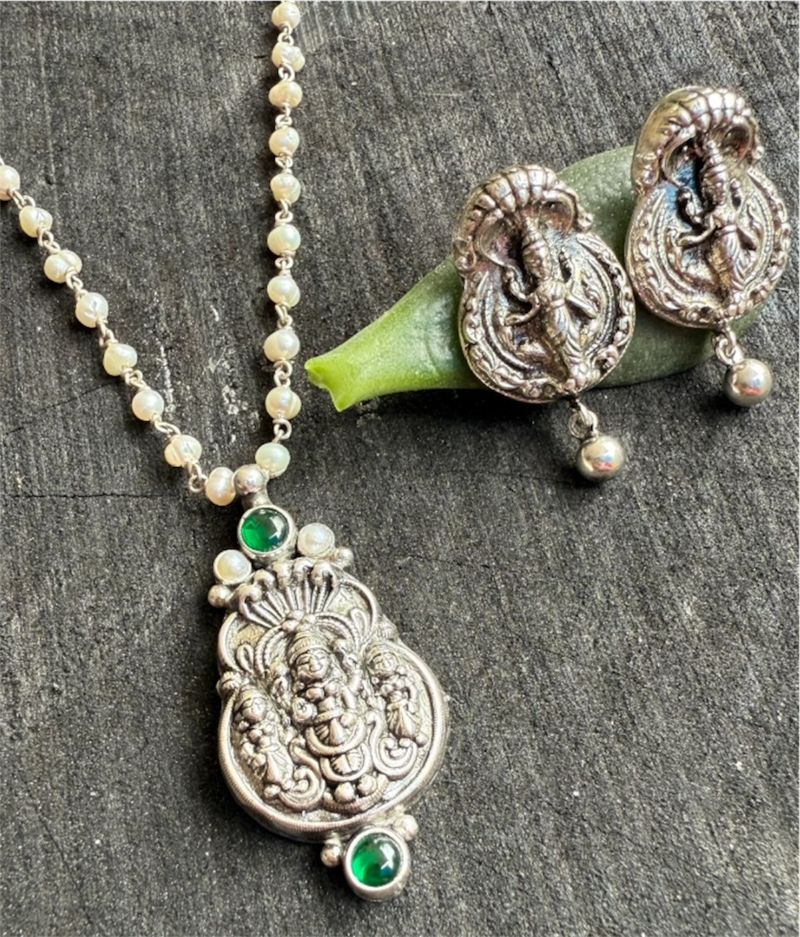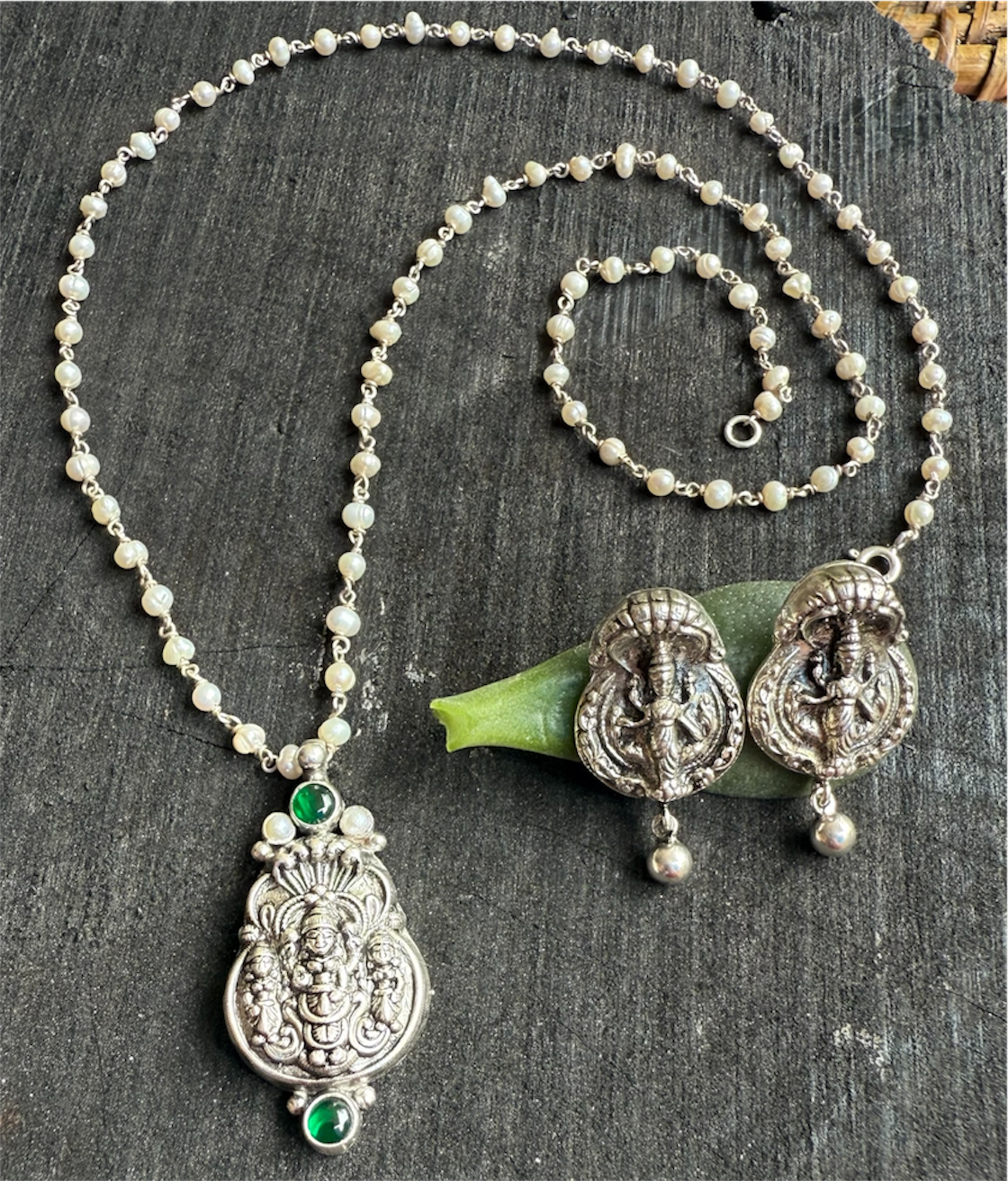 The Kavika Silver Lakshmi Nakshi Pearl Necklace & Earrings