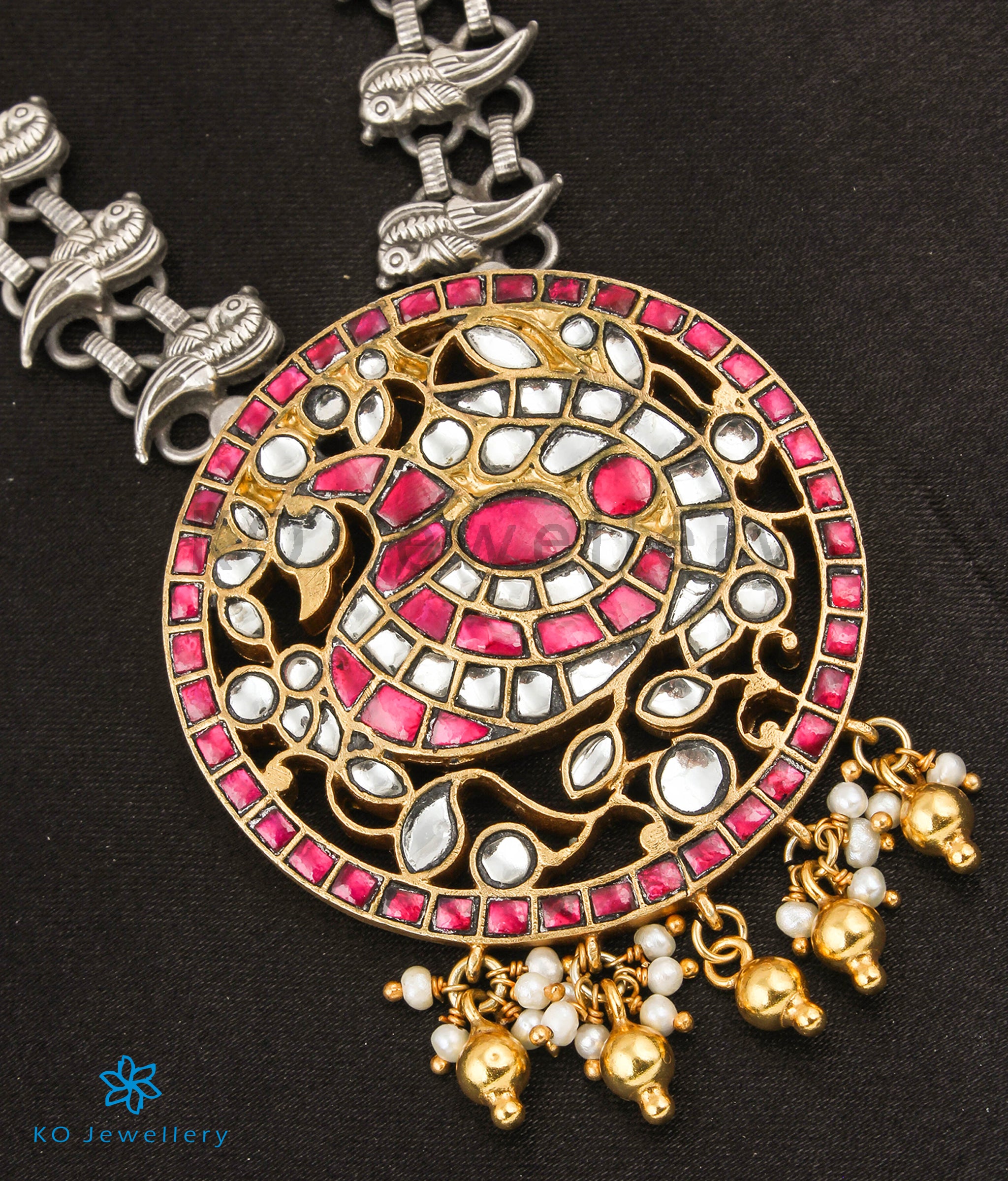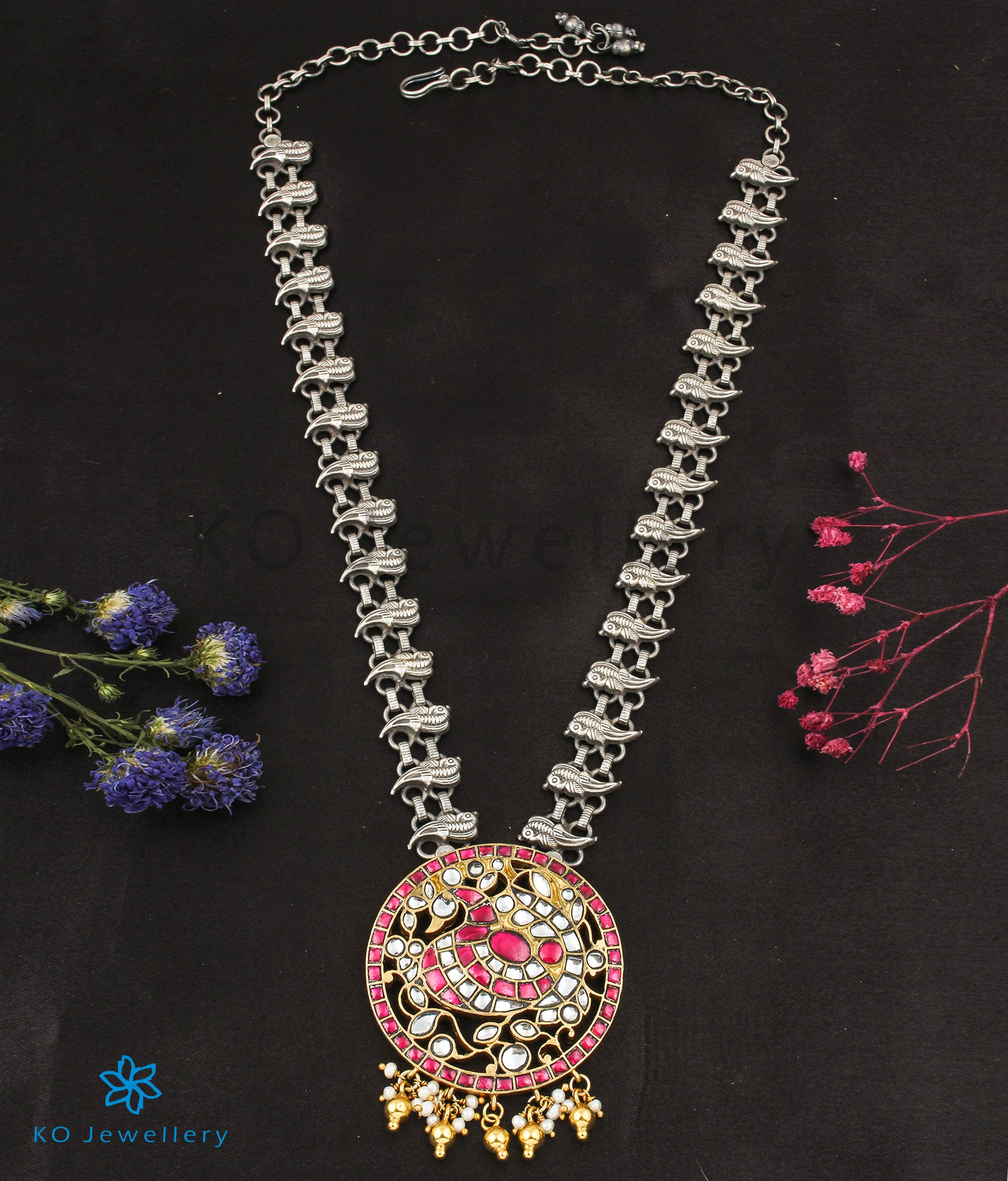 The Mor Silver Parrot Statement Necklace- Buy Polki Jewellery Online - KO Jewellery