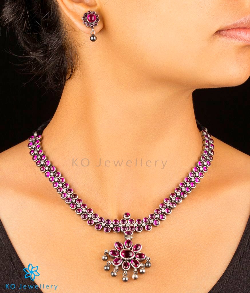 The Nivi Addige Silver Necklace (Red/Oxidised)