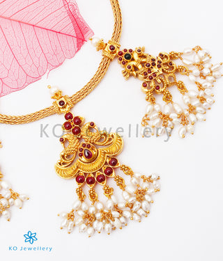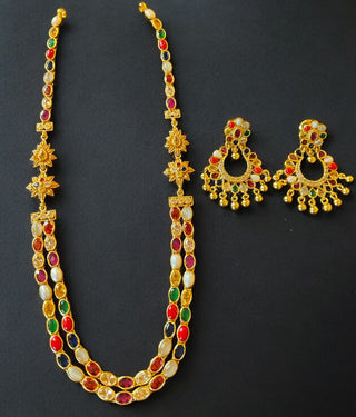 Silver and gold plated necklace sets with paired ear rings, haaras, kasu malas, dolki bead necklaces, manga-malai. Explore many more beautiful jewellery options.
