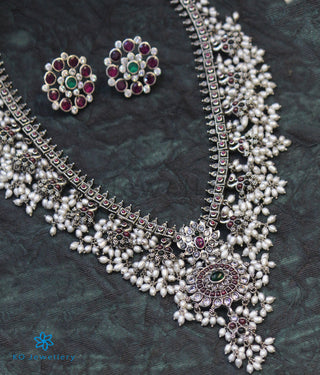 Silver and gold plated necklace sets with paired ear rings, haaras, kasu malas, dolki bead necklaces, manga-malai. Explore many more beautiful jewellery options.