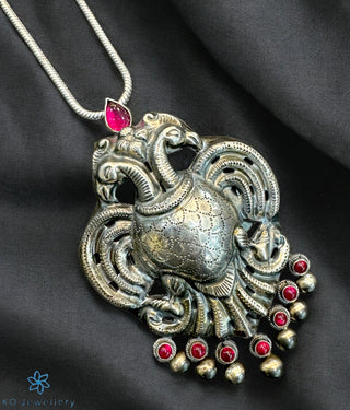 The Red Dvirupa Gandaberunda Silver Pendant/Brooch (Oxidised/Small)