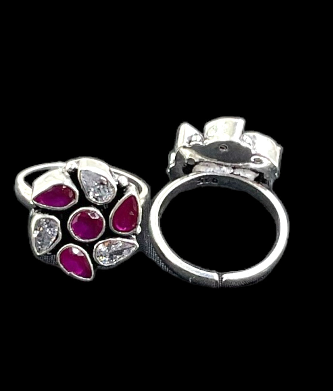 The Akshata Silver Toe-Rings (Red/White) -Buy Gemstones Jewellery Online - KO Jewellery