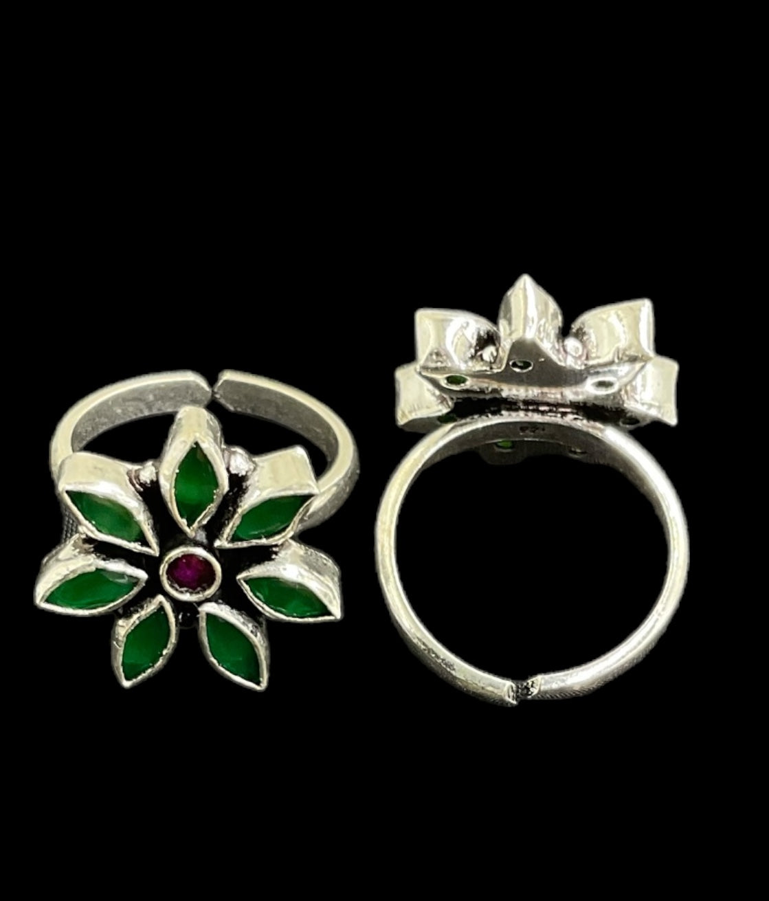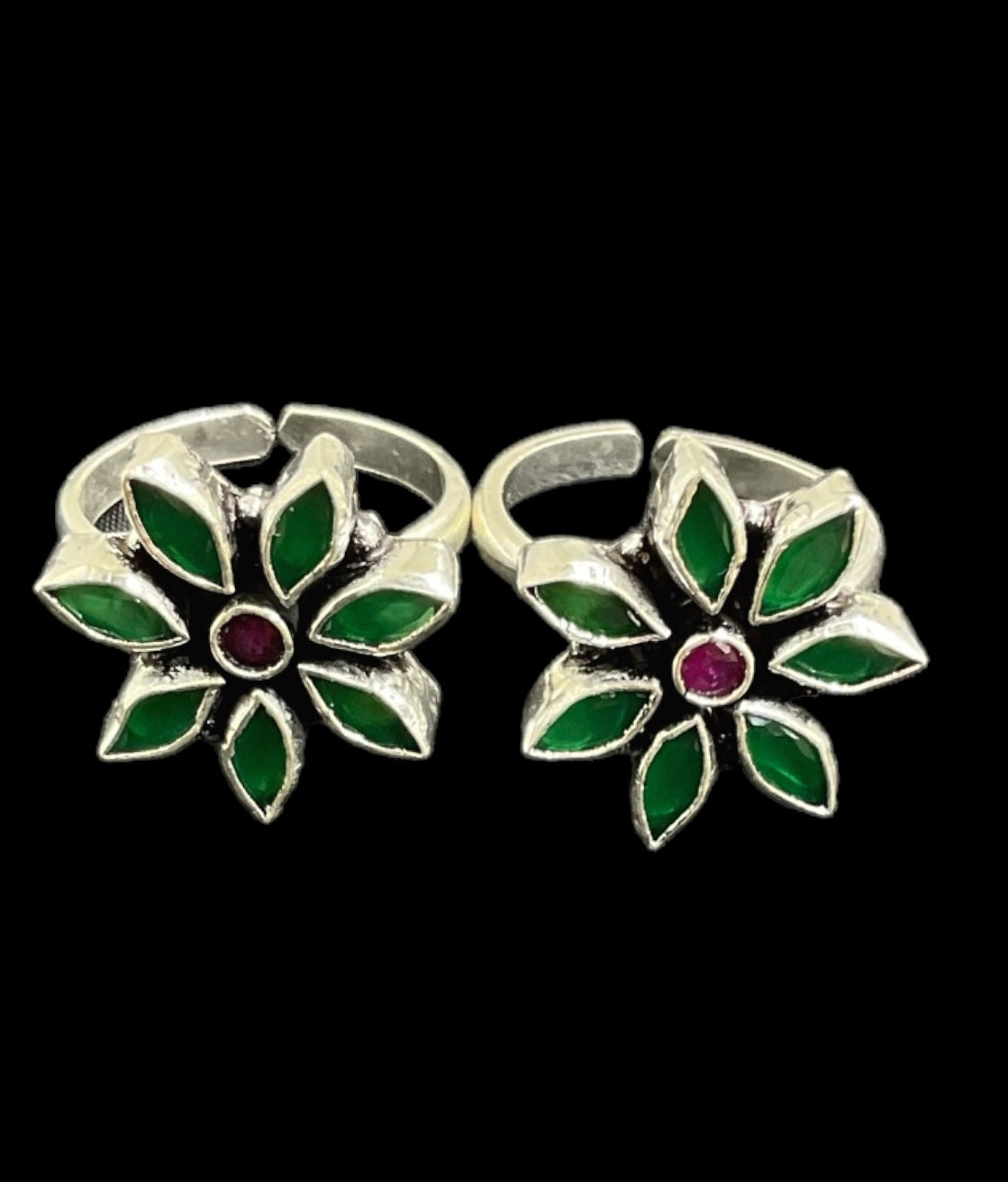 The Piali Silver Toe-Rings (Red/White) -Buy Gemstones Jewellery Online - KO Jewellery