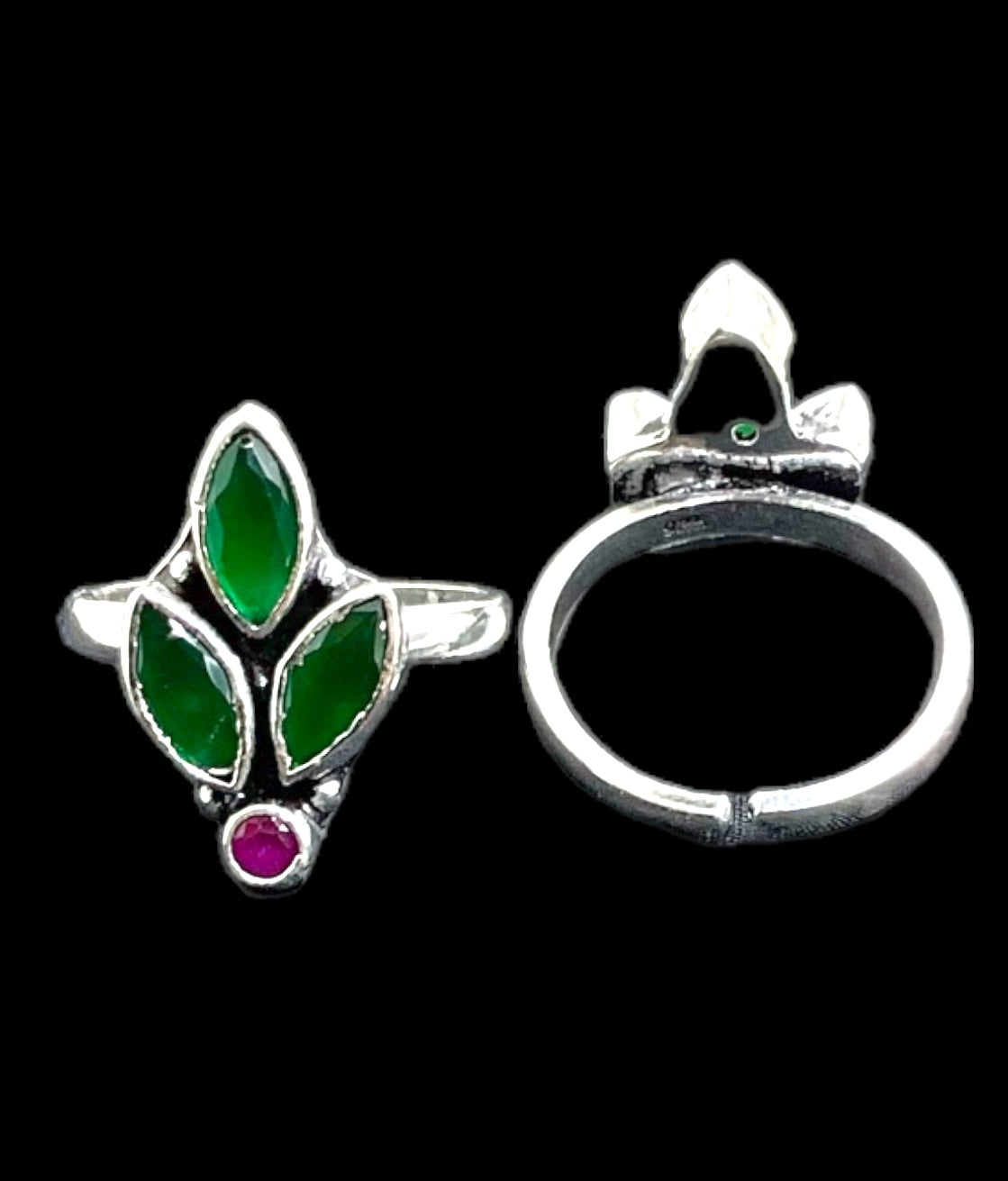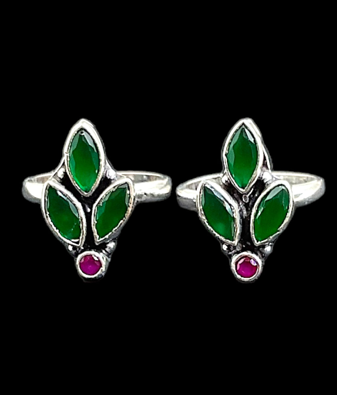 The Sarga Silver Toe-Rings (Green)-Rings -Buy Gemstones Jewellery Online - KO Jewellery