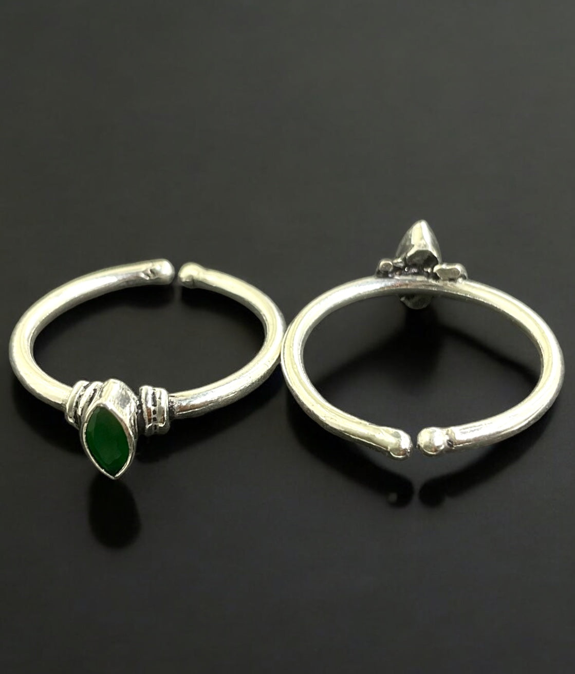 Let your feet do all the talking with this gorgeous pair of Sterling silver (92.5%) toe-rings with a single gemstone in the center. You can adjust the open silver band at the front to fit your toe size.