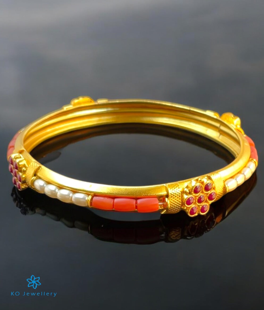 The Saumya Silver Coral & Pearl Kemp Bangle-Single (Size /2.2/2.4/2.6/2.8)