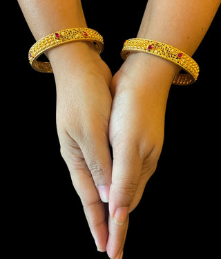 The Parag Silver Red Kemp Filigree Bangle- Single (Size /2.2/2.4/2.6/2.8)