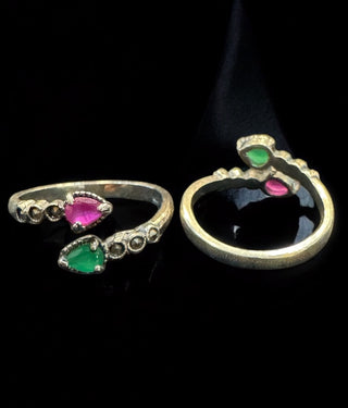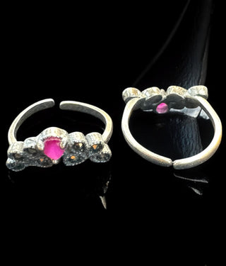 The Pihu Silver Marcasite Toe-Rings (Red)