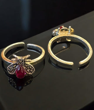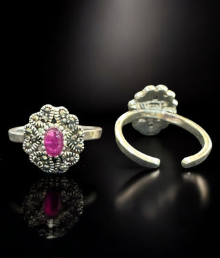 The Stavya Silver Marcasite Toe-Rings (Red)