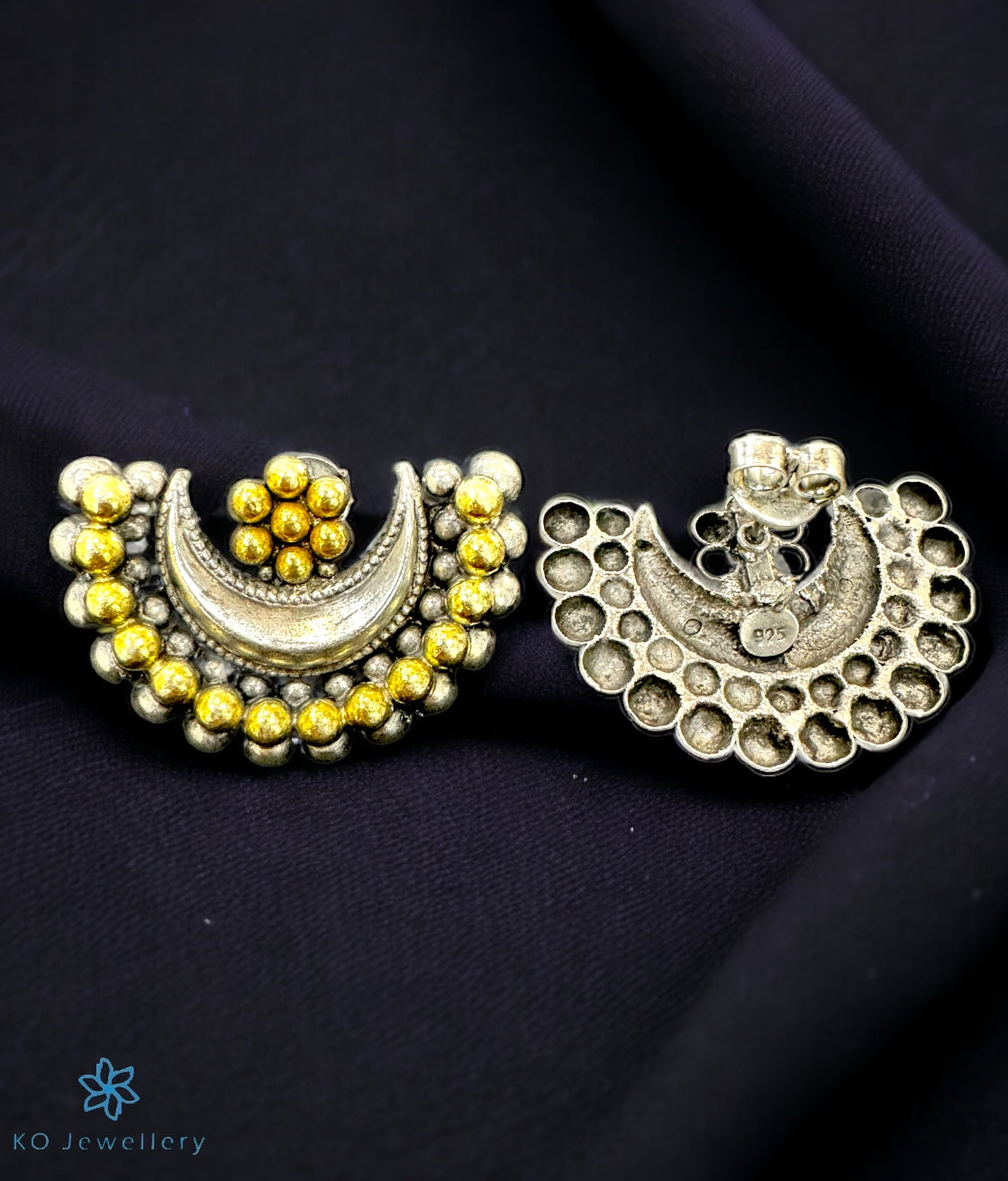 The Chandra Antique Silver Earrings (Big/ Two-Tone)