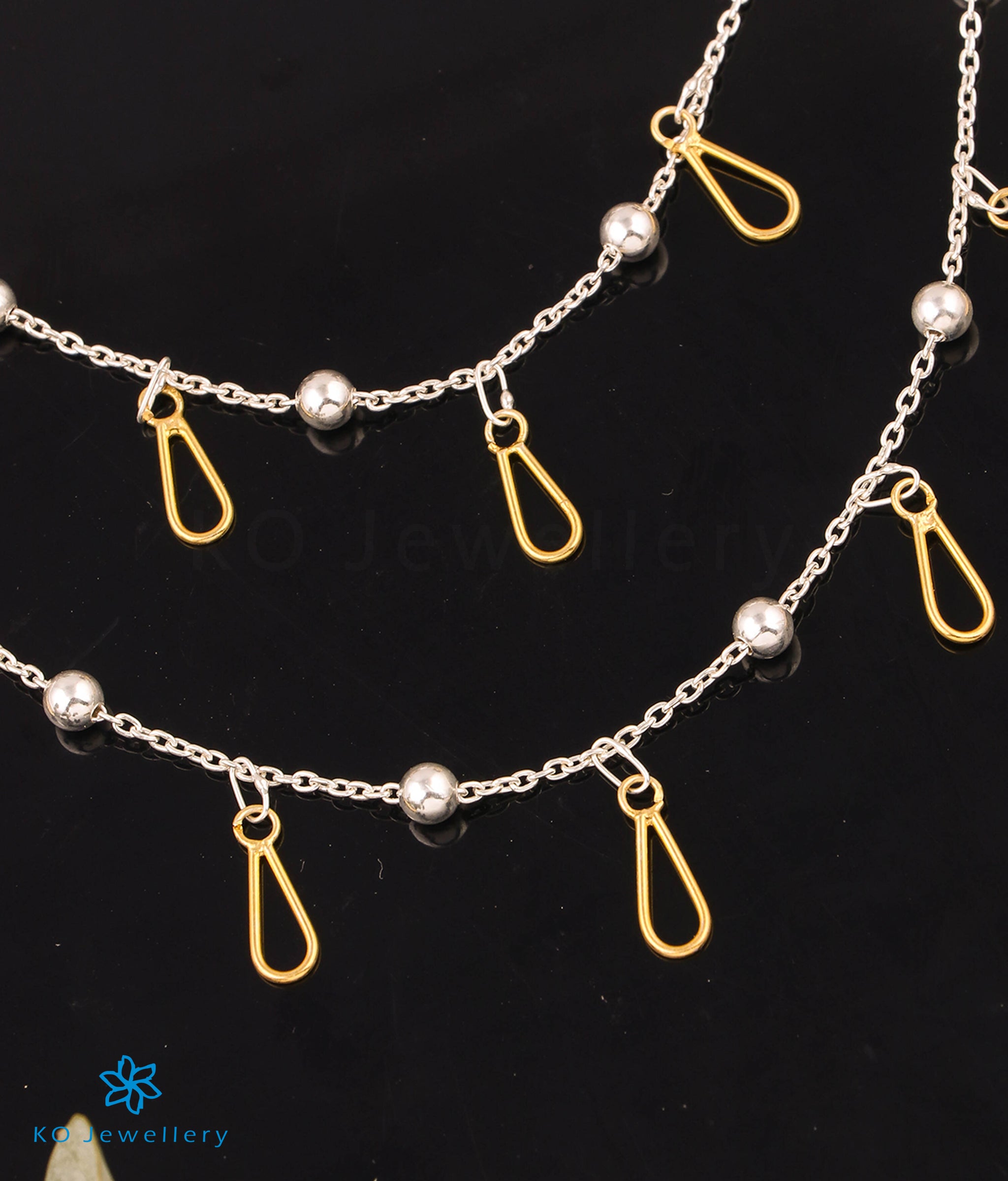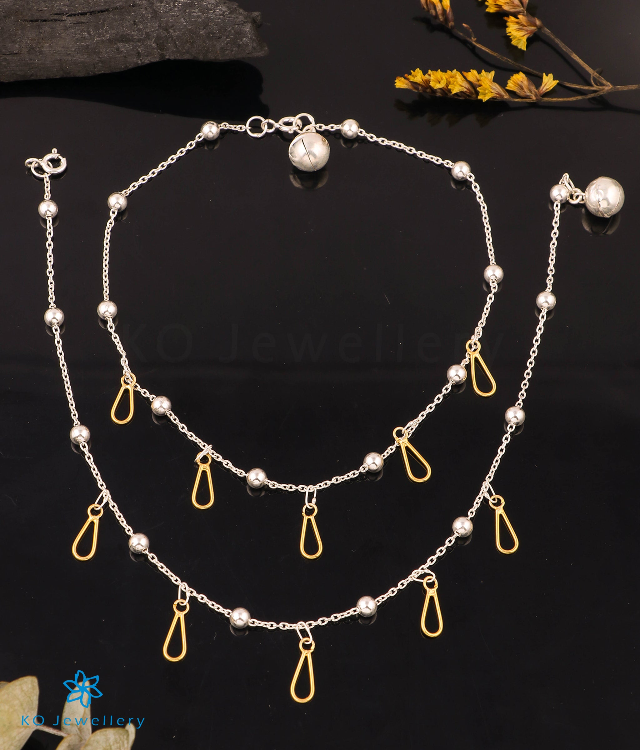 A gorgeous pair of Sterling Silver (92.5%) anklets with a pretty design to flaunt on your pretty feet. Handcrafted by seasoned craftsmen, these pure silver anklets with a two tone gold & silver finish make for a charming pair .