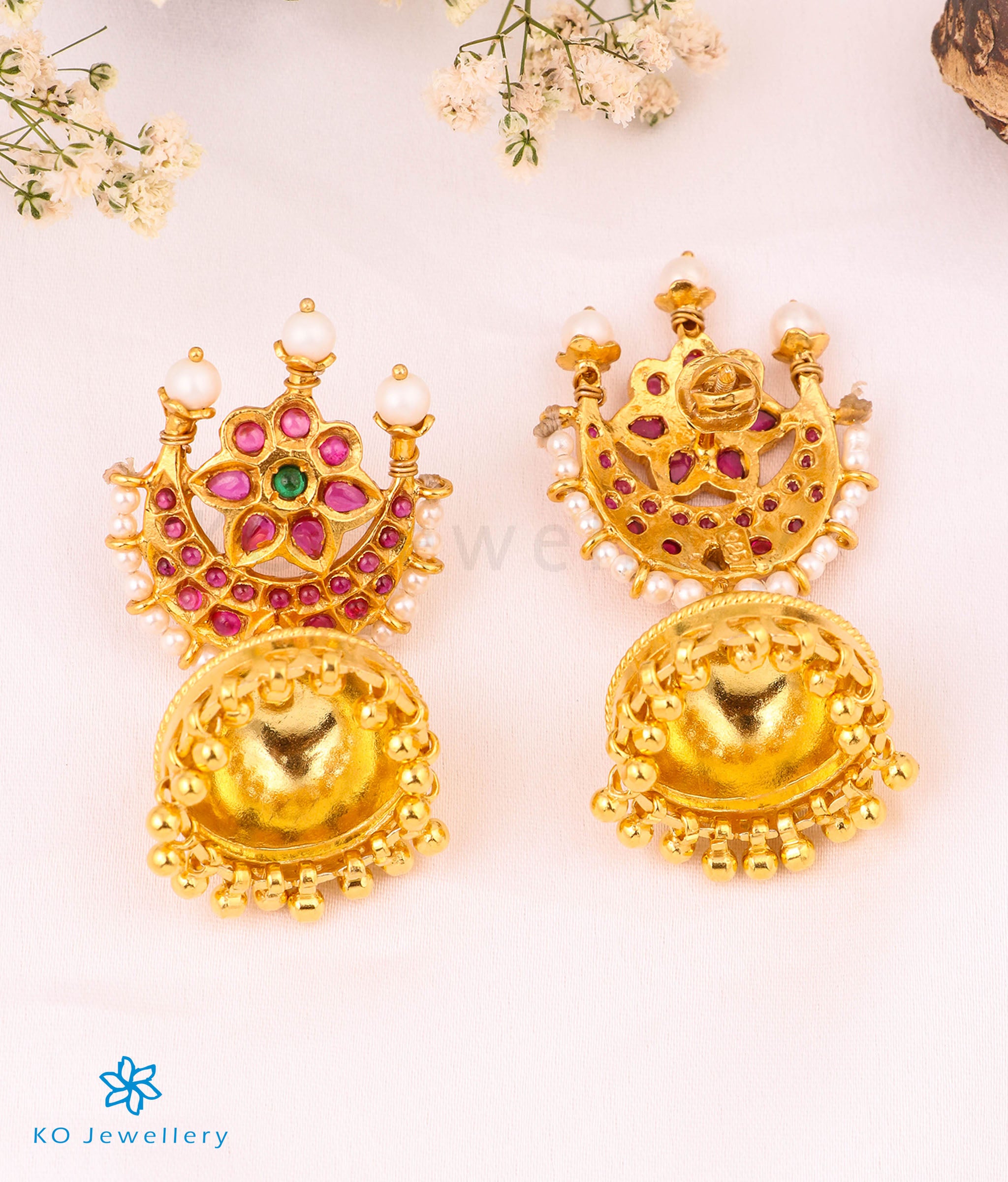 Gemstones used: Natural pearl, kempu stone (also known as spinel or Zircon).