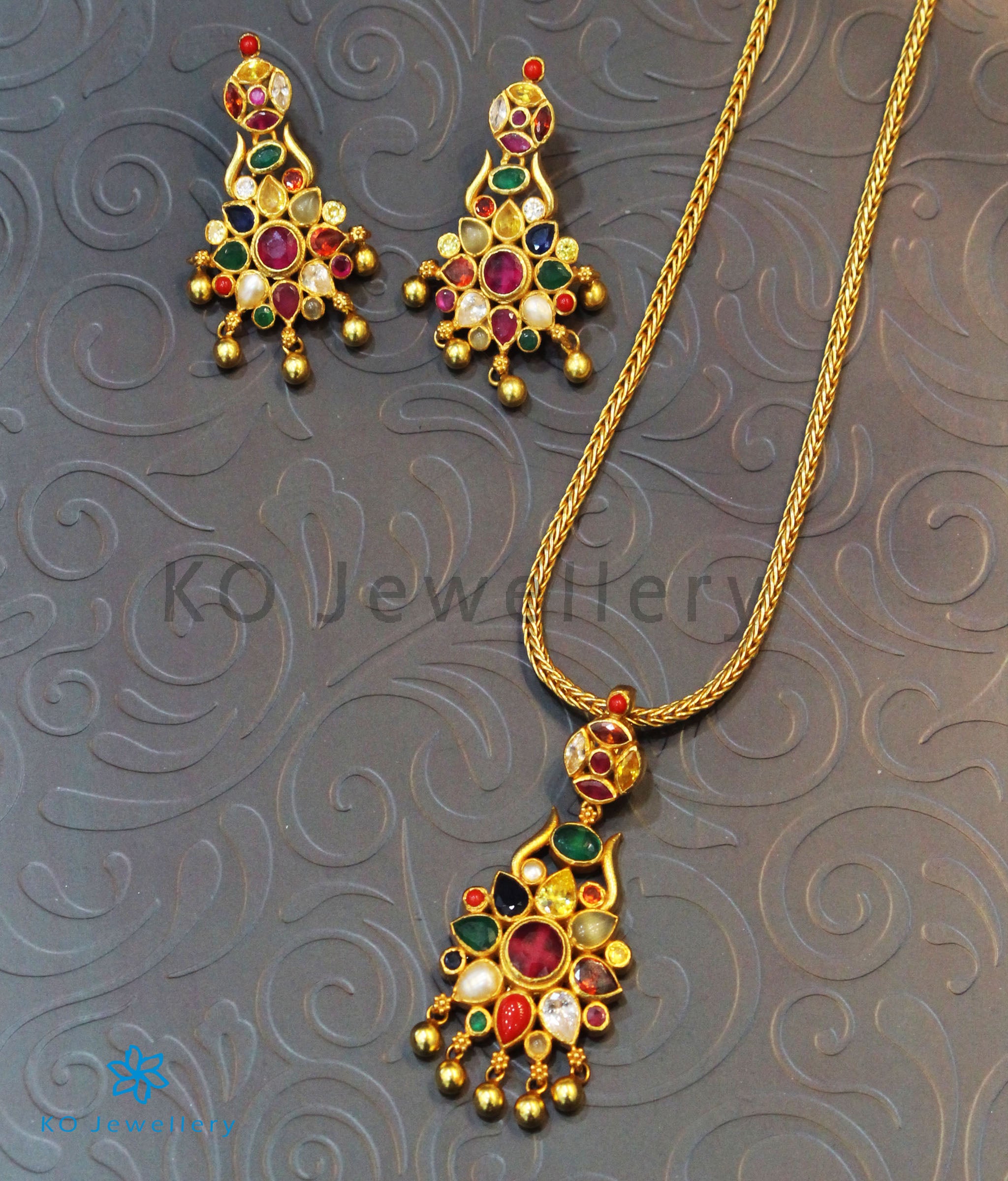The Raaga Silver pendant-Buy Bridal Temple Jewellery Online-Buy Gold Plated Silver Necklace Set Online - KO Jewellery