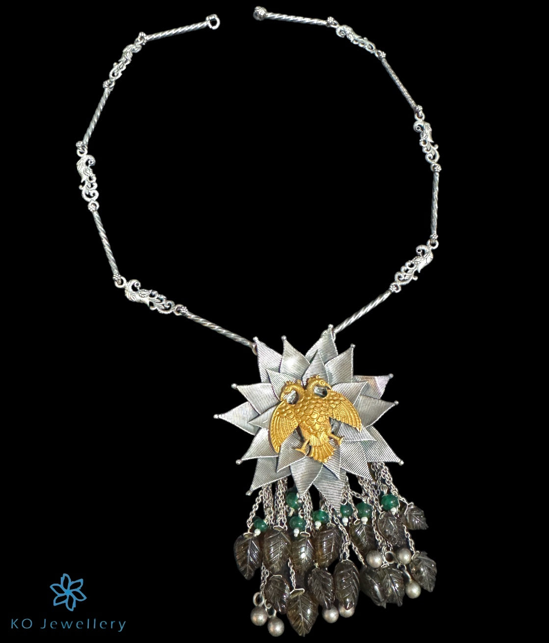 The Rachana Silver Antique Gandaberunda Necklace (2 tone)