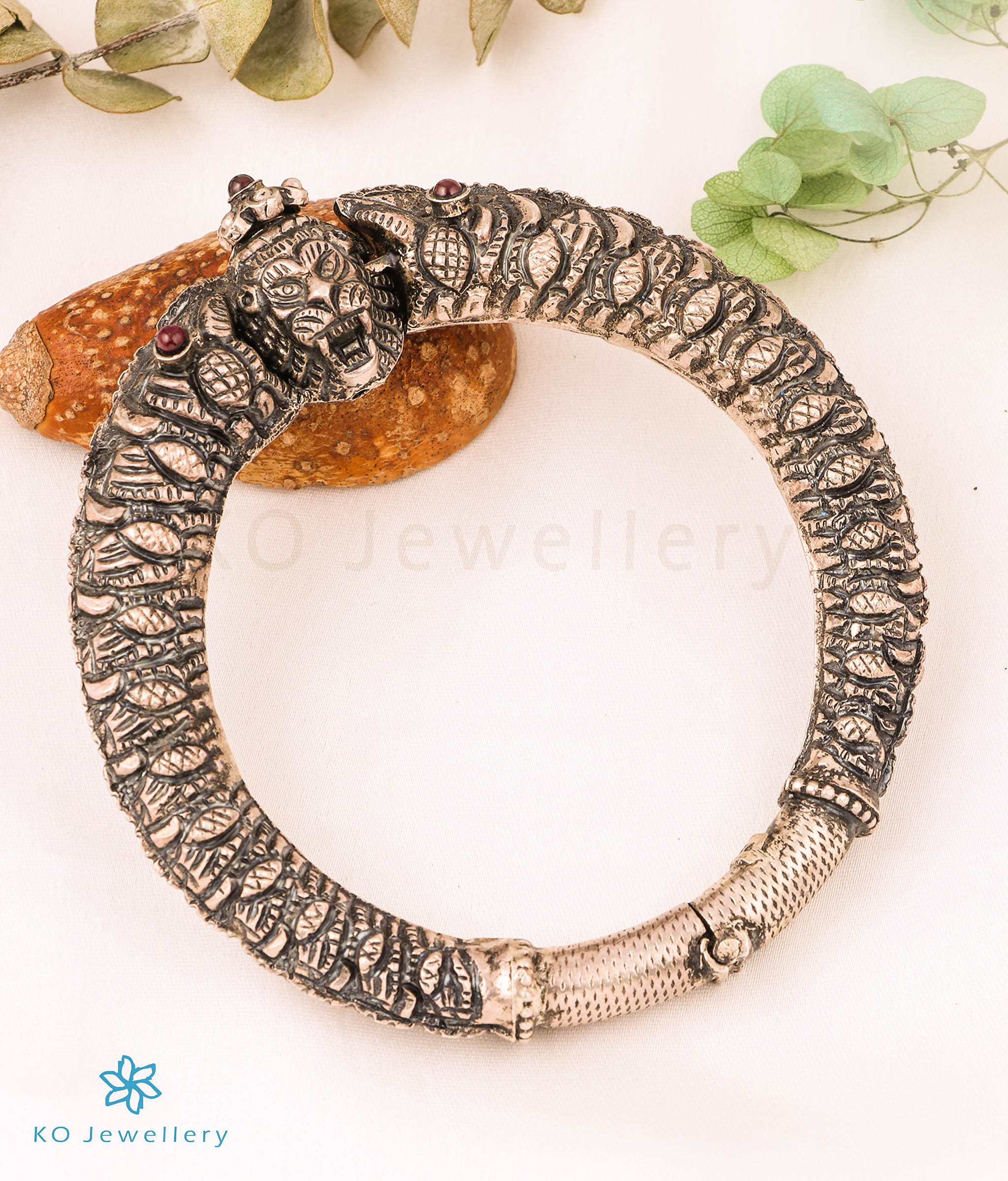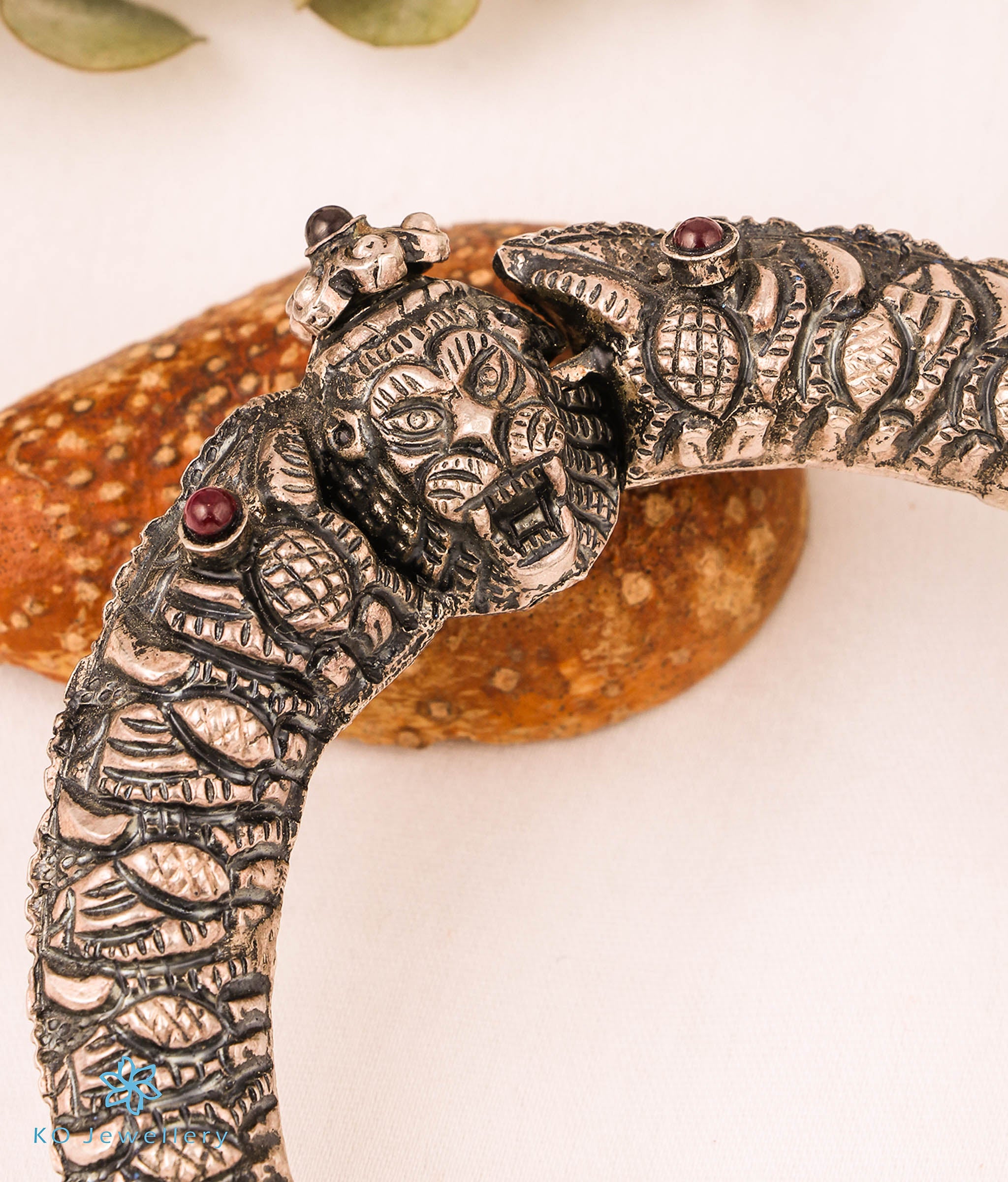 The Simhada Antique Silver Lion Kada (Oxidised/Size 2 & 2.4)