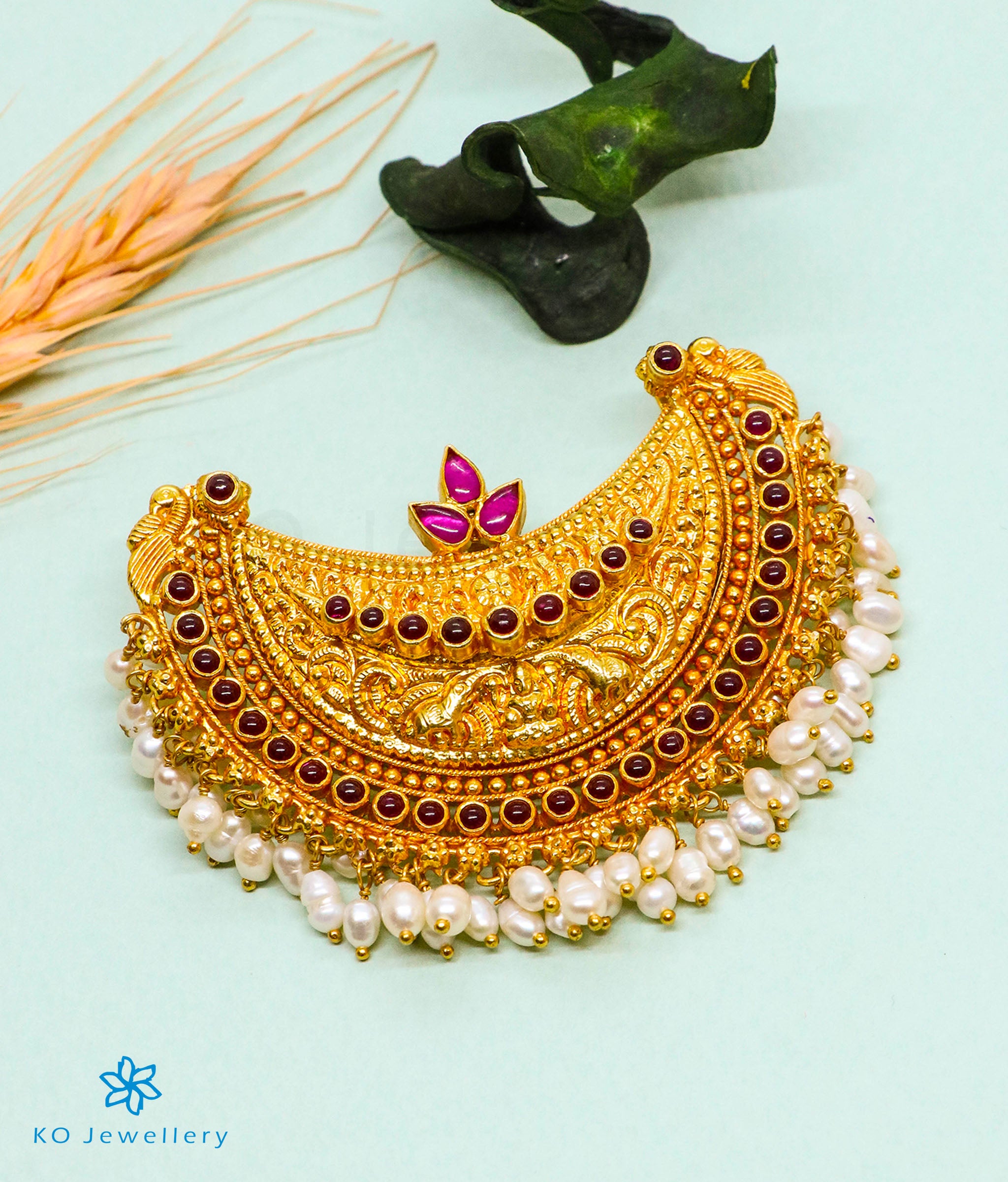Gemstones used: kempu stone (also known as spinel or Zircon), natural Pearl.