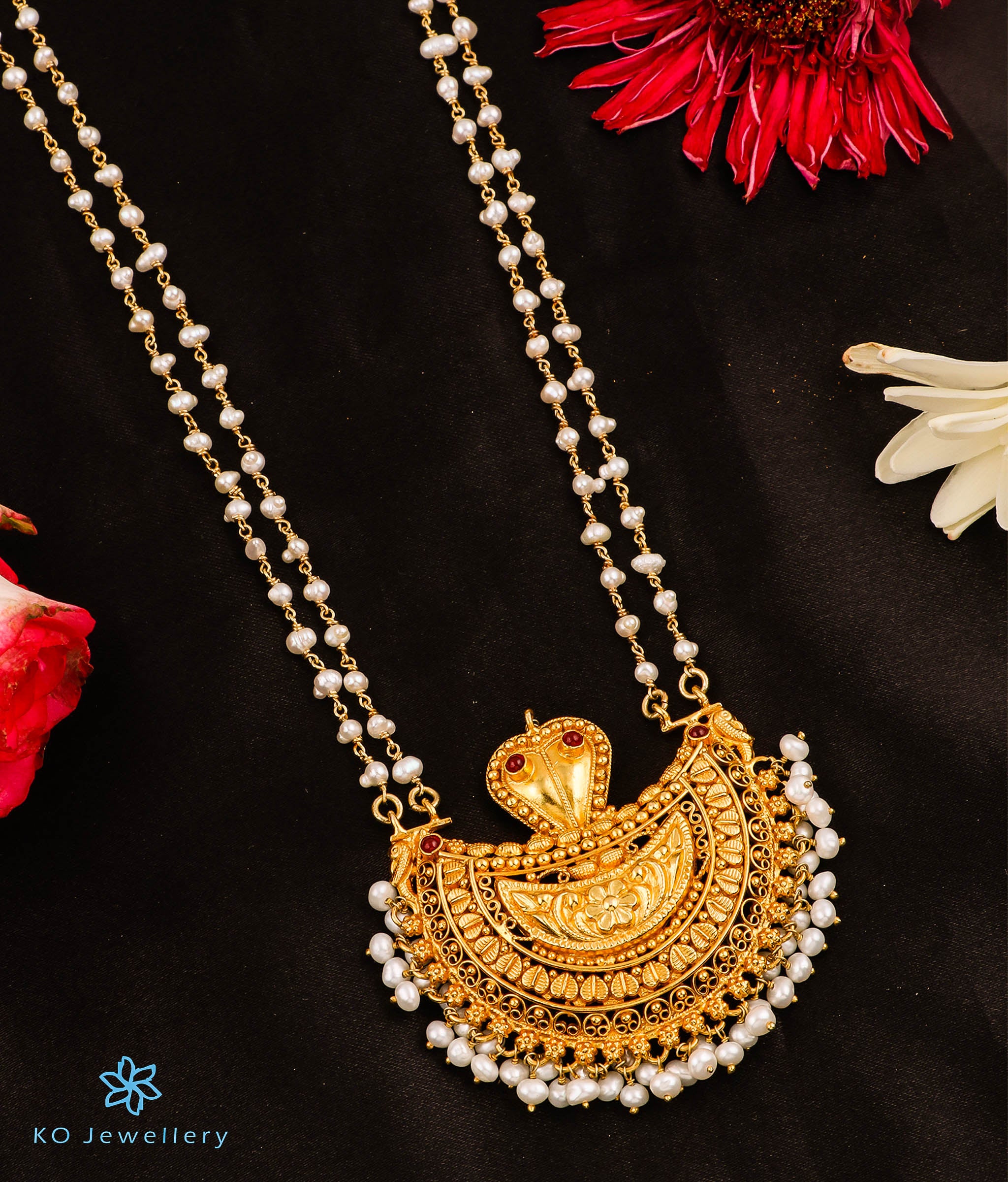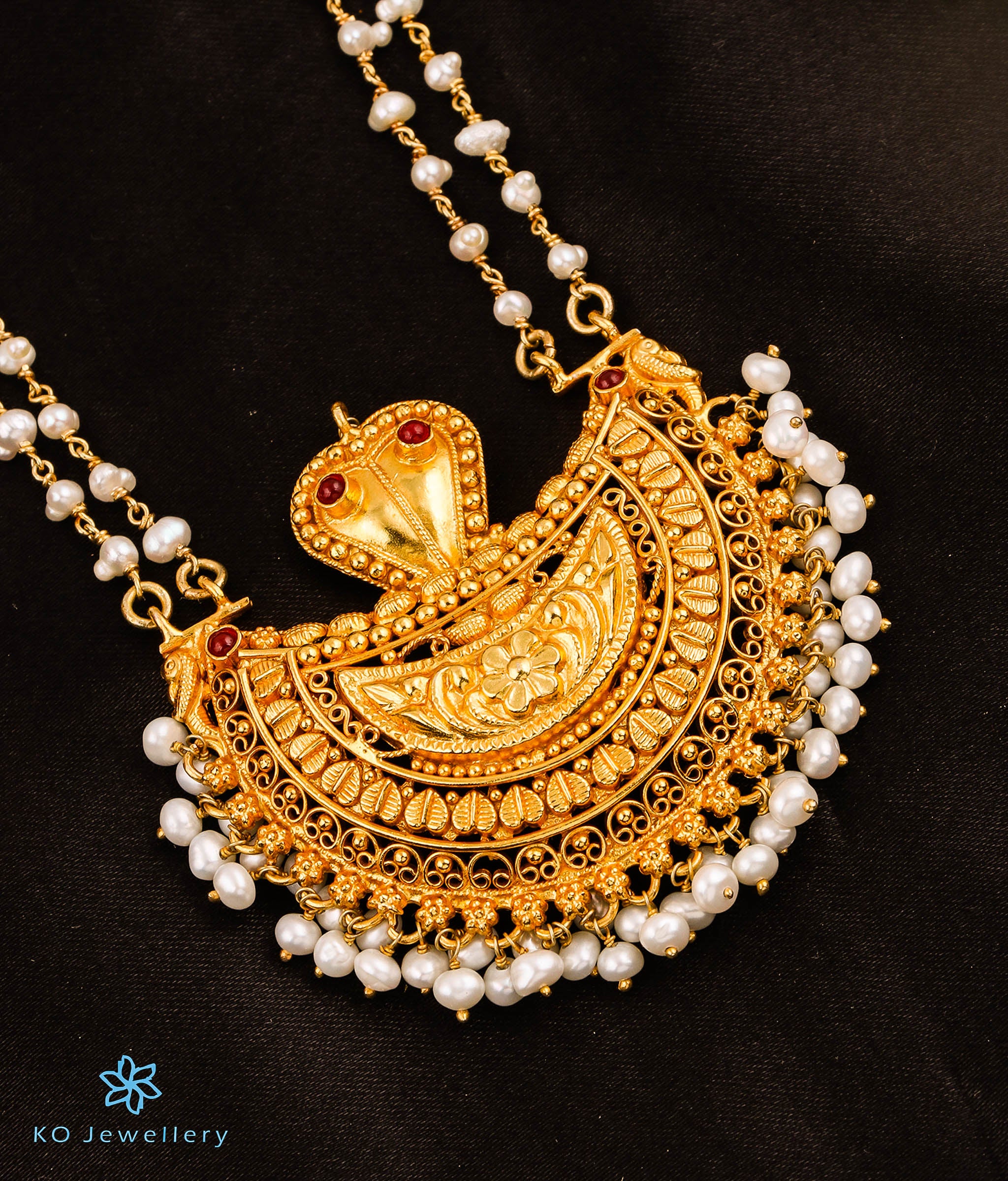The Varnita Kokkethathi Silver Pearl Necklace-Buy real Heritage temple jewellery - KO Jewellery